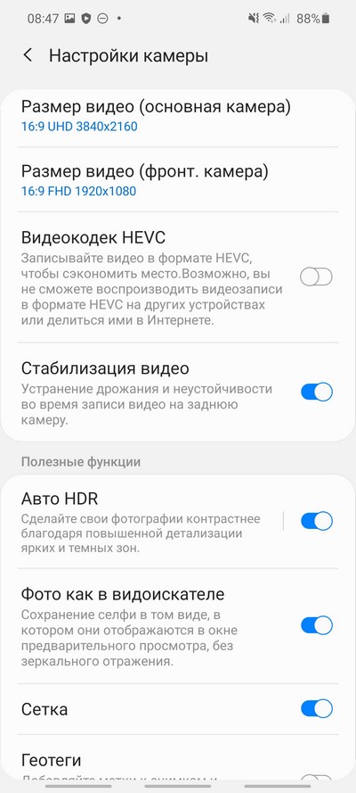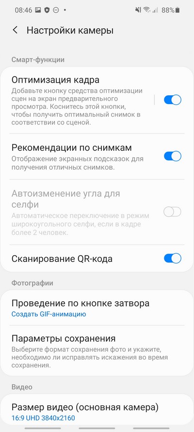 Традиционный самсунговский интерфейс. Сверху - переключатели и фильтры, снизу - режимы и смена камер (коих тут три - основная, сверхширик и макро, но камера макро подключается при выборе соответствующего режима).