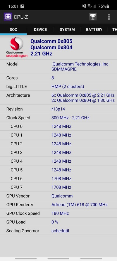 Процессор: Qualcomm Snapdragon 730G (8 nm), Octa-core (2 × 2.2 GHz Kryo 470 Gold & 6 × 1.8 GHz Kryo 470 Silver)