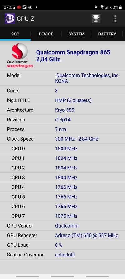 Процессор: Qualcomm SM8250 Snapdragon 865 (7 nm+) CPU Octa-core (1x2.84 GHz Kryo 585 & 3x2.42 GHz Kryo 585 & 4x1.8 GHz Kryo 585) или Exynos 990 (7 nm+) Octa-core (2x2.73 GHz Mongoose M5 & 2x2.50 GHz Cortex-A76 & 4x2.0 GHz Cortex-A55)