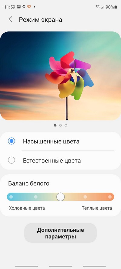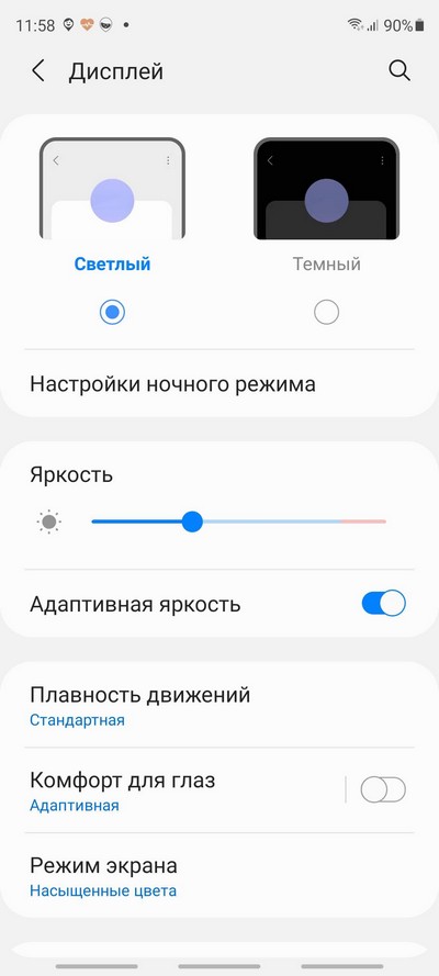 Снижение нагрузки на глаза вечером и ночью, режим экрана.
