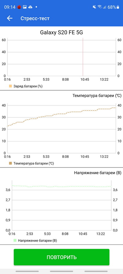 Аккумулятор здесь достаточно емкий, 4500 мА·ч. Вот что выдается по тестам (выставлена частота обновления 60 Гц).