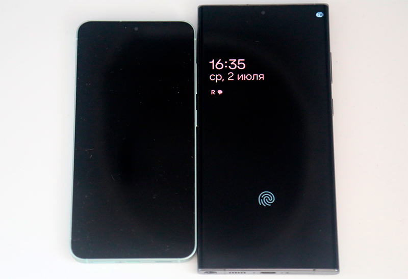 Ну и вот этот смартфон рядом с моим Samsung Galaxy S23 Ultra. Обратите внимание, насколько он меньше.