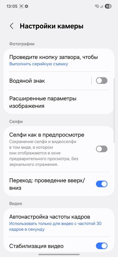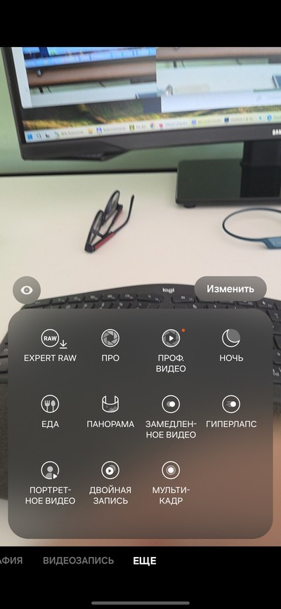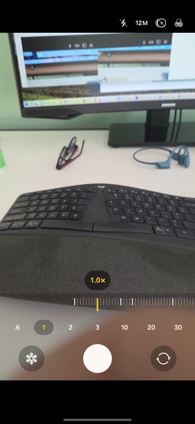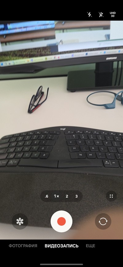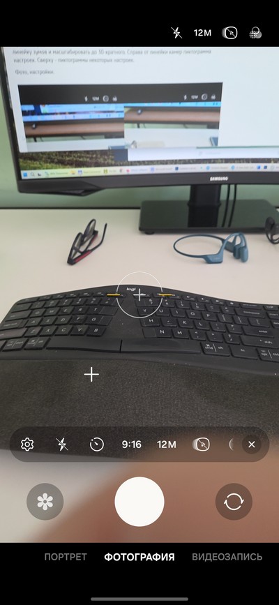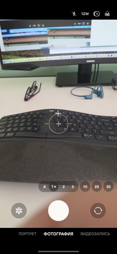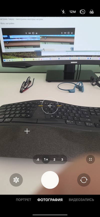Интерфейс камеры. Снизу переключаются режимы, выше переключение между сверхшириком, основной камерой, двукратным гибридным зумом и трехкратным оптическим. При нажатии на эту линейку дополнительно появляются гибридные зумы 10, 20 и 30 (непонятно зачем).  Также можно вызвать линейку зумов и масштабировать до 30-кратного. Справа от линейки камер пиктограмма настроек. Сверху - пиктограммы некоторых настроек.