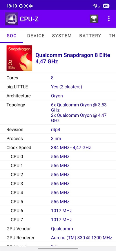 Процессор: Qualcomm Snapdragon 8 Elite (3 nm)