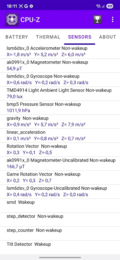 Дополнительно: датчик освещения, приближения, акселерометр, электронный компас, барометр, стереодинамики