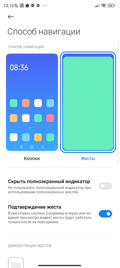 Как обычно, управление смартфоном можно делать с помощью экранных кнопок (настраиваемых) или с помощью жестов. Это настраивается в пункте меню "Безграничный экран". Также дополнительно можно настраивать функции кнопок.