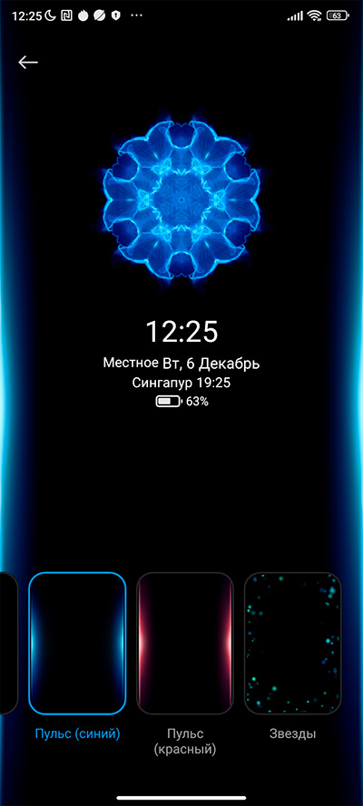 Также здесь есть режим уведомления цветом (например, о пропущенном сообщении или звонке) по краям экрана, и его цвет настраивается.
