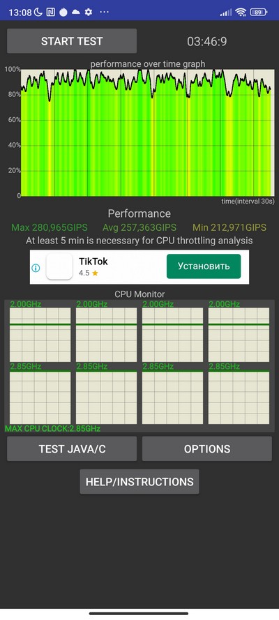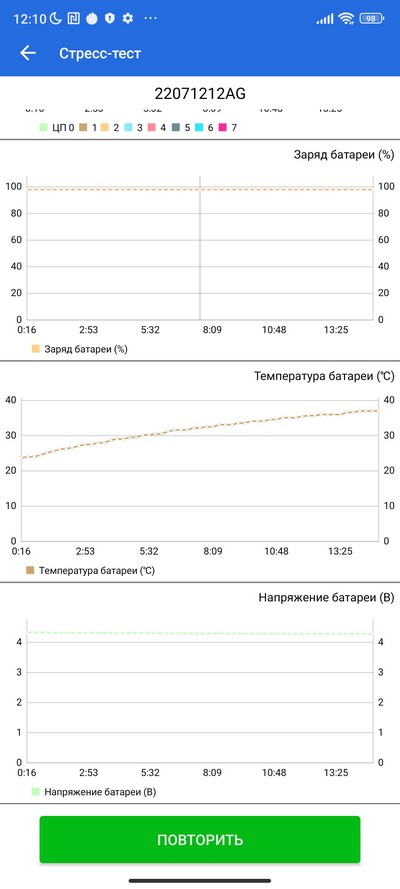 Стресс-тест. Температура поднялась только до 37 градусов.