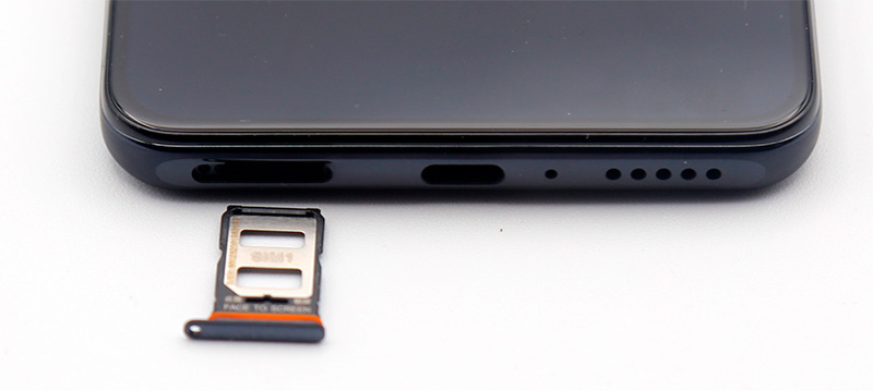Нижняя грань - слот для вставки с симкартами, порт USB-C, микрофон, отверстия над стереодинамиком.