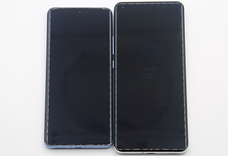 AMOLED-дисплей отличного качества, с очень хорошими углами обзора. Белый цвет при сильных отклонениях приобретает легкий голубоватый оттенок. Запас по яркости - отличный (максимальная яркость 1100 нит), на прямых солнечных лучах изображение хорошо различимо.