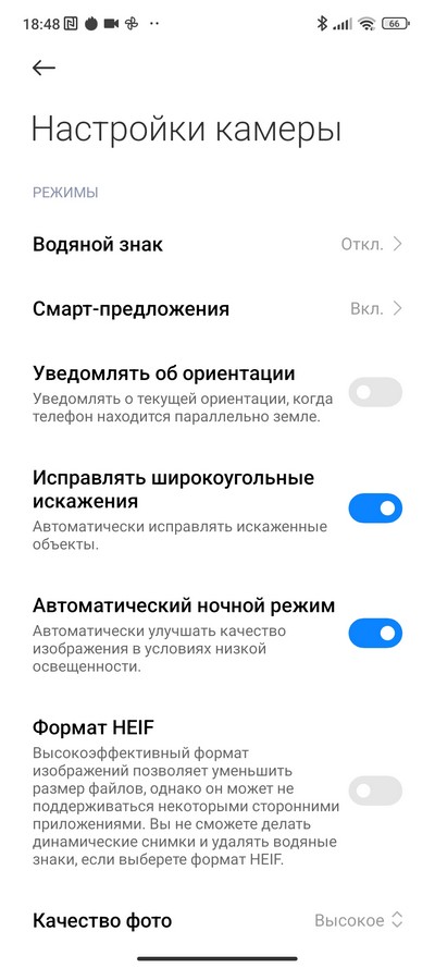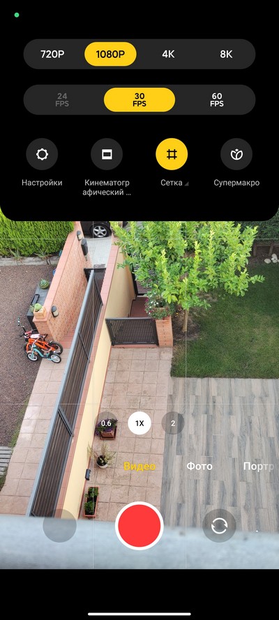 Интерфейс камеры. Снизу переключаются режимы: профи, видео, фото, портрет, 50 Мпикс, видеоблог (Vlog), и их набор настраивается. Выше переключение между сверхшириком, основной камерой и цифровым зумом (по умолчанию 2-кратный, но можно вызвать линейку зумов и масштабировать до 10-кратного). Сверху - пиктограммы различных переключателей и пиктограмма меню.  На правом скриншоте - окно меню с настройками.