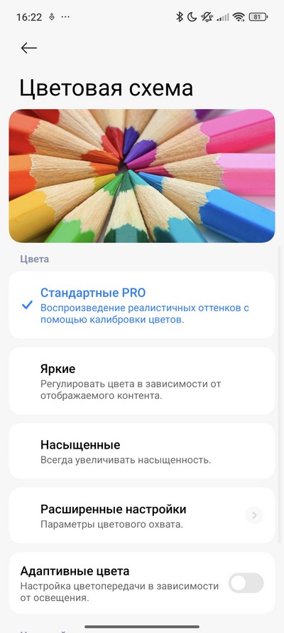 Настройки экрана - стандартные для Hyper OS. Есть темный режим, режим чтения, можно настраивать размер шрифта и масштаб. Частота обновления может подбираться автоматически, а может задаваться вручную.