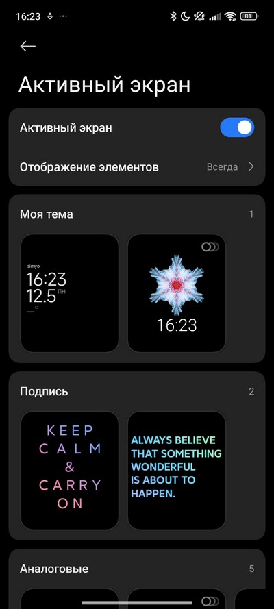 Активный экран здесь полноценный, в настройках есть режим "Всегда включен".