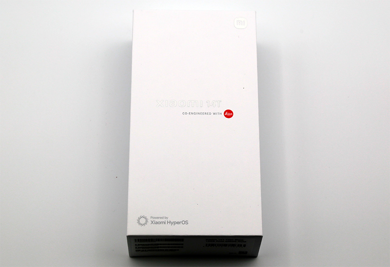 Традиционное оформление упаковки для топовой серии смартфонов Xiaomi: плохо различимое название модели, надпись о сотрудничестве с Leica и надпись о том, что устройство имеет оболочку Xiaomi HyperOS.