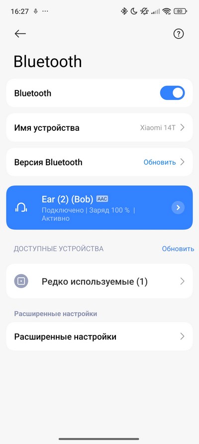 Для проверки беспроводного звучания подключил наушники Nothing Ear (2). Наушники подключились по кодеку AAC, однако в настройках можно было включить и кодек LHDC.