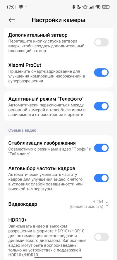 Фронтальная камера: 32 Мпикс, f/2,0, видео 4K/30fps