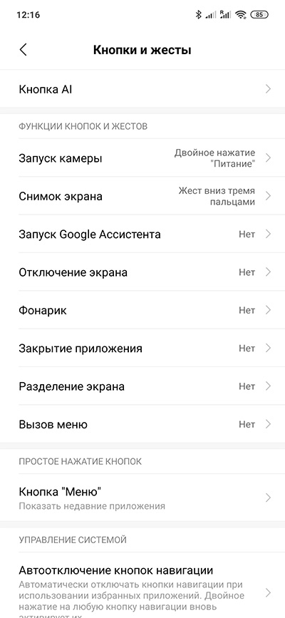 На лицевой части смартфона никаких управляющих кнопок нет. Смартфон поддерживает как обычные экранные кнопки навигации, которые настраиваются, так и полноэкранные жесты.