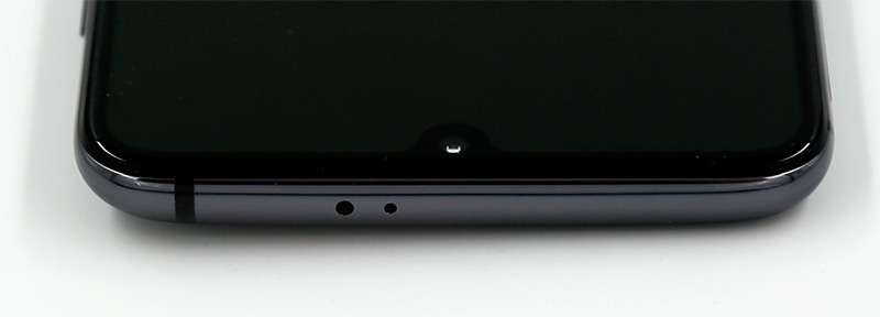 Я сначала подумал, что динамик здесь встроен в дисплей, как у Huawei P30 Pro, однако нет - вон его прорезь в самом верху. Также в этой области расположены светодиод уведомлений и некоторые датчики.