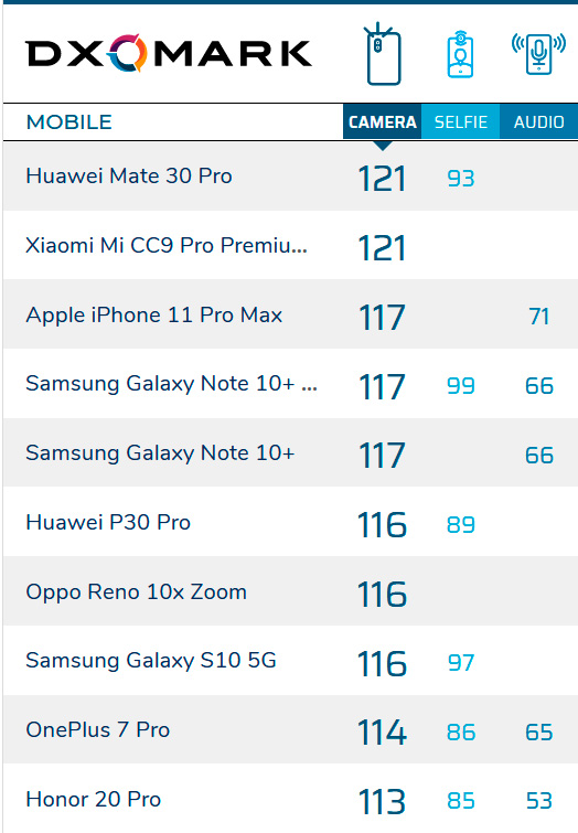 Специалисты DXOMark смартфон Xiaomi CC9 Pro Premium (глобальная версия - Xiaomi Mi Note 10 Pro) поставили на первое место в компании с Huawei Mate 30 Pro. А это уже серьезная заявка на успех, тем более что Mi Note 10 от Mi Note 10 Pro по камерам практически не отличается (у Note 10 Pro основная камера восьмилинзовая, у Note 10 - семилинзовая, вот и все отличие), при этом Xiaomi Mi Note 10 даже на старте продаж можно купить уже где-то за 35 тысяч, а Huawei Mate 30 стоит примерно 45 тысяч (и при этом кому он, скажем честно, вообще нужен без сервисов Google).