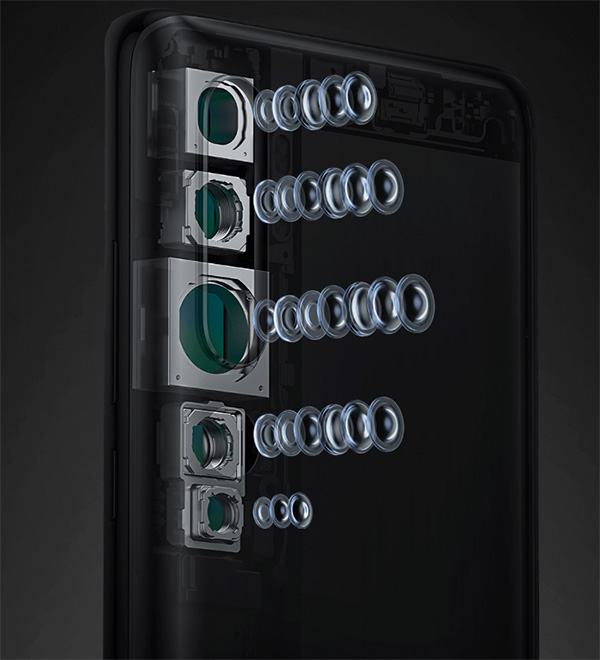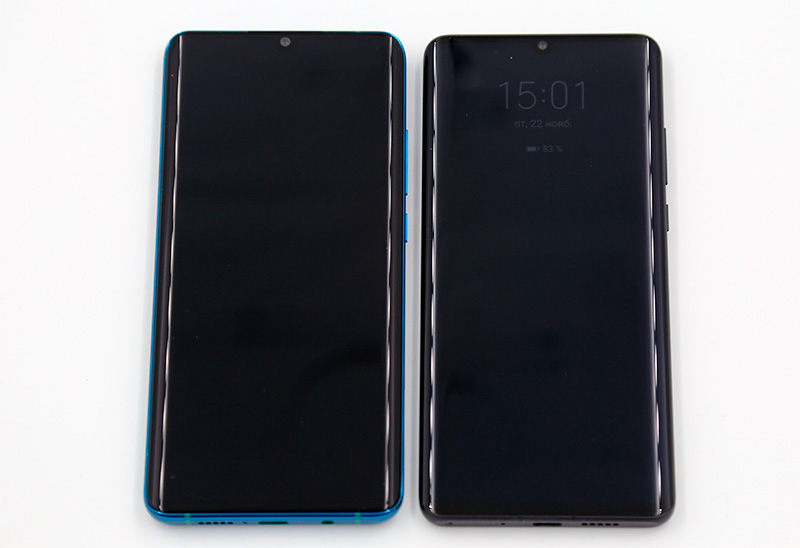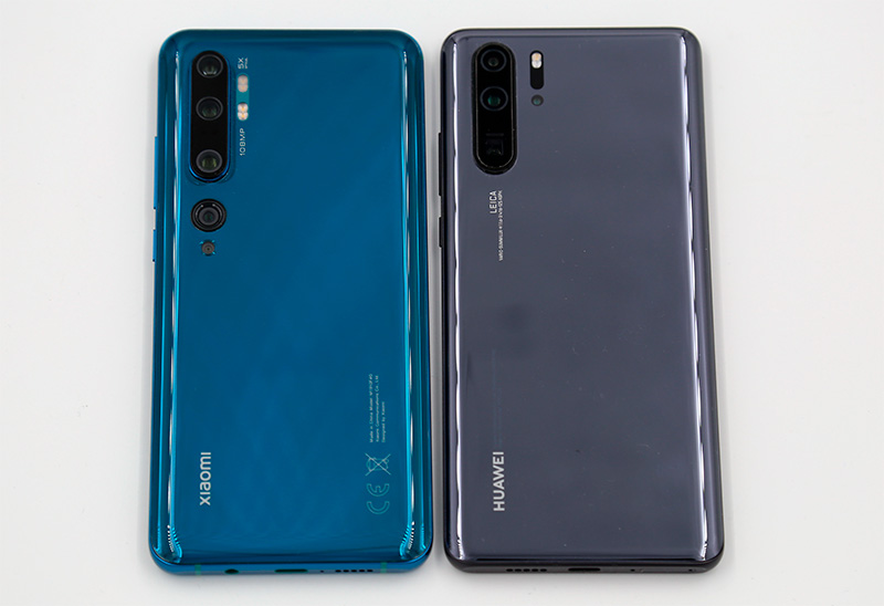 По дизайну Mi Note 10 очень напоминает Huawei P30 Pro - вот они рядом (Huawei справа).
