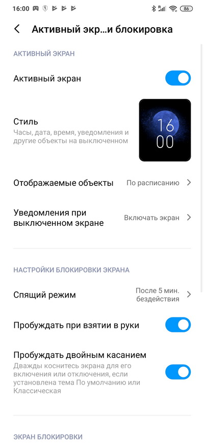 Активный экран - режим всегда включенного экрана. Этот режим также гибко настраивается.