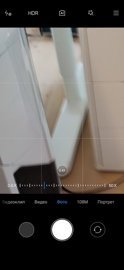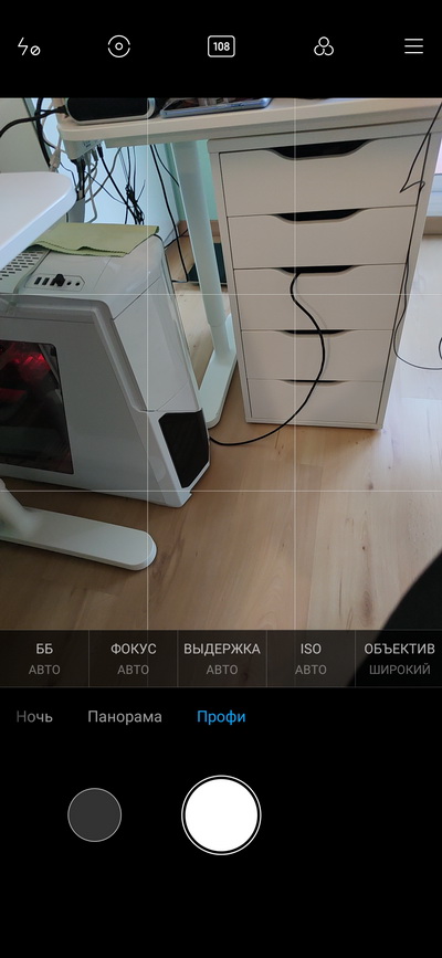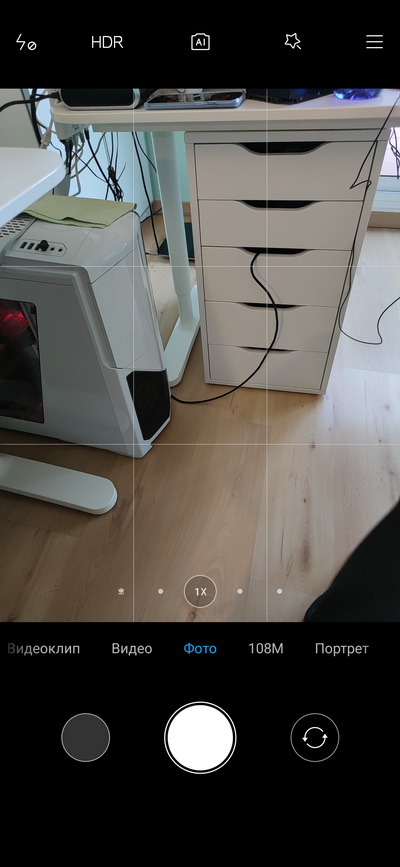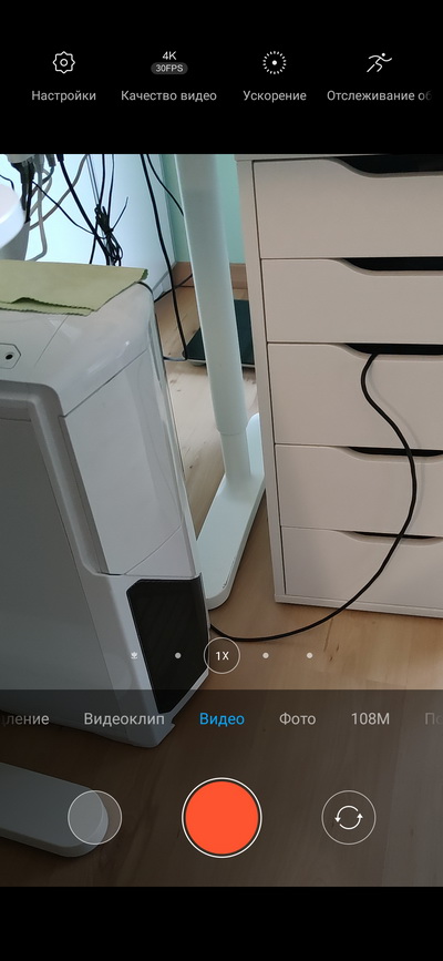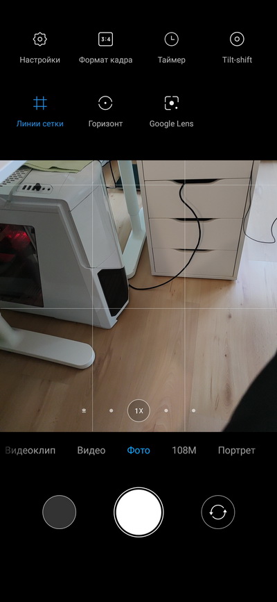 Интерфейс - стандартный для Xiaomi, я его считаю довольно удобным. В самом низу переключатели: фото, режим 108 Мпикс, видео, видеоклип, замедление, портрет, ночь, панорама, профессиональный режим.