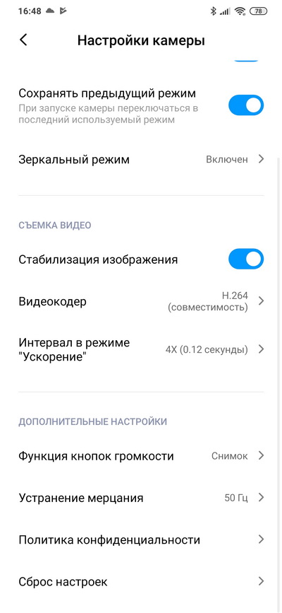 Режим видео с настройками. Там можно выбирать качество, делать ускорение (такой эффект для инстаграмма), отслеживать конкретный объект. Плюс еще можно включить режим суперстабилизации (только для Full HD 30 fps), видеоэффекты для видеоблога и режим улучшения для видео.