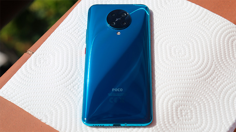 На задней крышке стекло - тоже Gorilla Glass 5, как и на дисплее. Три камеры и датчик глубины размещены в круглой выступающей зоне, под ней - вспышка. На задней крышке содержится надпись POCO, которая наверняка приведет в бешенство членов секты противников надписей на задних крышках.