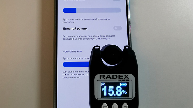 Экран AMOLED - значит, измеряем мерцание. Сначала, конечно, без подавления мерцания.