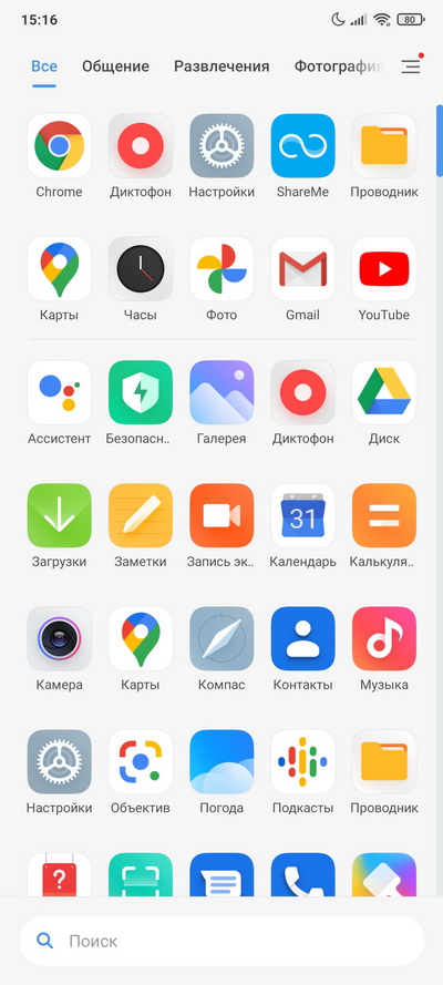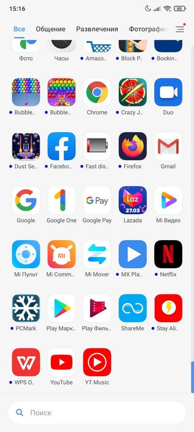 Установленные в системе приложения.