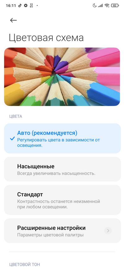 Настраивается цветовая схема.