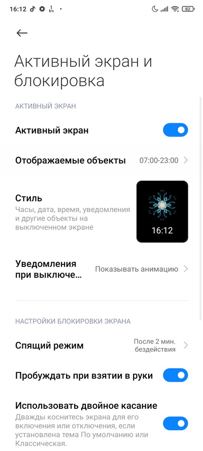 Настройки активного (Always On) экрана.