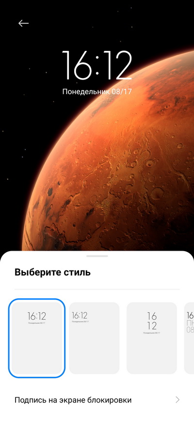 Задается стиль изображения на экране блокировки.
