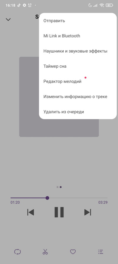 Прослушивание музыки и меню.