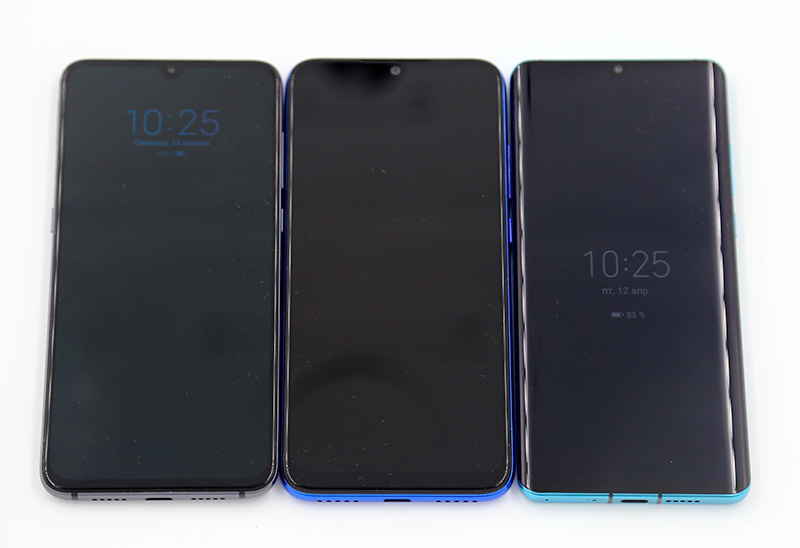 Ну и вот он в компании с Xiaomi Mi 9 (слева) и Huawei P30 Pro (справа).