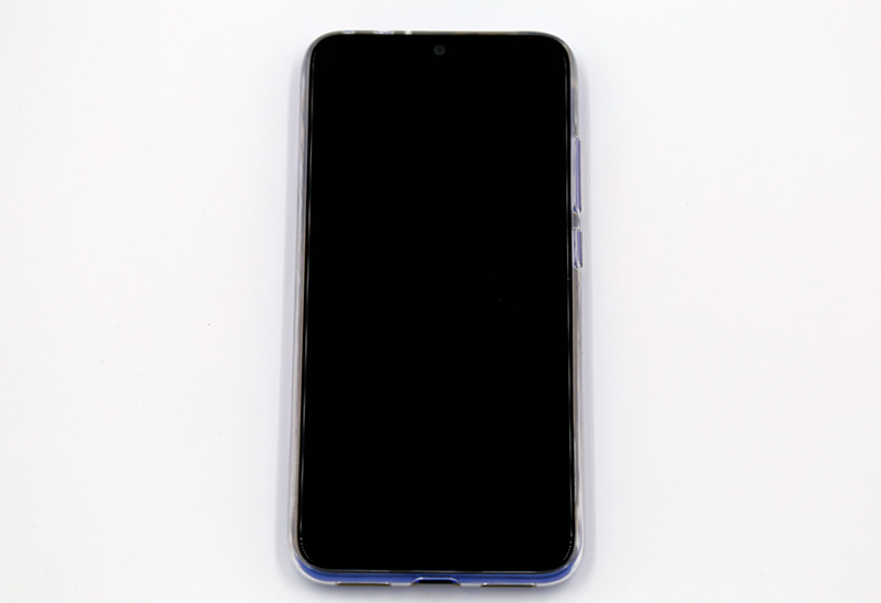 Достаточно типовой вид для современного смартфона - экран занимает почти всю поверхность. Под камеру сделан небольшой каплевидный вырез.