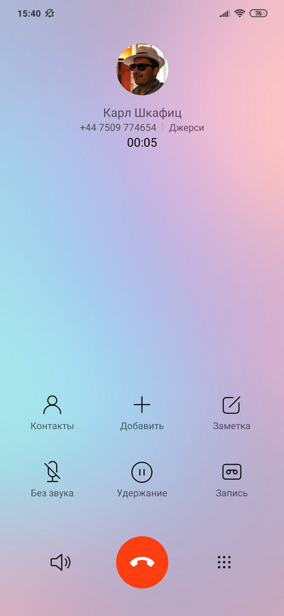 Режим разговора. Качество связи - очень хорошее, шумоподавление также работает хорошо.
