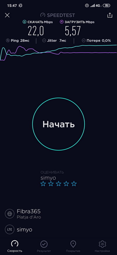 Мобильный Интернет для данных условий показывал ожидаемые скорости.