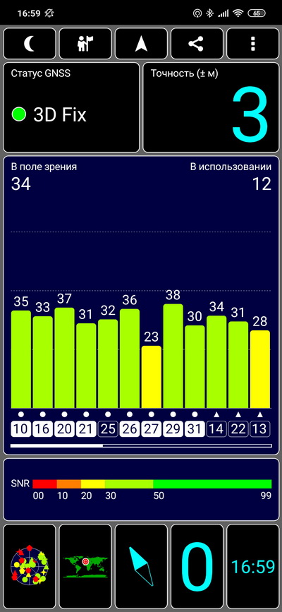 Как и ожидалось, даже с холодного старта спутники определились почти мгновенно, с определением координат для навигации никаких проблем не было.