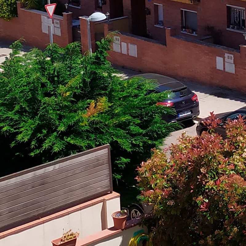 Во-первых, начнем с того, что кропы перепутаны местами. Если мы будем вырезать "точка в точку" фрагмент 800x800 пикселей из 12 мегапикселей и из 48 мегапикселей, очевидно, что площадь изображения из кадра с большим количеством мп будет меньше и, соответственно, объект на изображении крупнее. Чтобы было понятнее для тех, кто с математикой не в ладах - если мы вырезаем 800 мп по горизонтали из картинки разрешением 8000x6000 (48мп), то это будет 10 % от длины кадра по горизонтали, а если мы вырезаем те же 800 мегапикселей из картинки 4000x3000 (12 мп), то это уже 20% от длины кадра, т.е. кроп охватывает большую площадь. А в примерах мы видим противоположное, кроп, на котором машина занимает весь кадр, а это 10 % от длины кадра по горизонтали (соответственно 48 мп), заявлен как кроп с 12 мп. и наоборот.