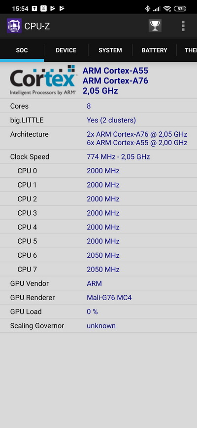 Процессор: Mediatek Helio G90T (12nm), CPU Octa-core (2x2.05 GHz Cortex-A76 & 6x2.0 GHz Cortex-A55)