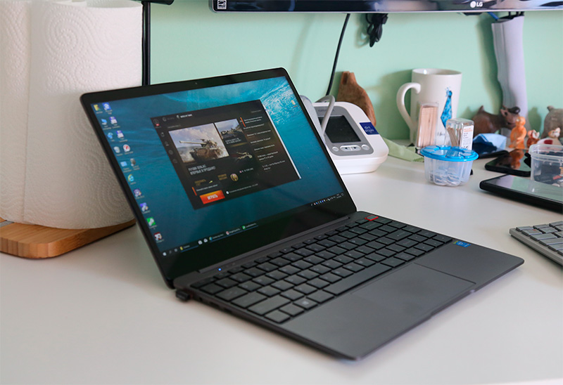 Понятно, что с такой платформой ноутбук не игровой. Но, впрочем, во что-то не слишком крутое здесь поиграть вполне можно. Установил клиента World of Tanks, погонял. Игра выставила низкие настройки графики, но при этом играть было вполне комфортно: ничего не зависало, не дергалось и не тормозило.