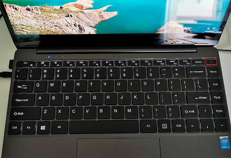 Клавиатура - удобная, с большими клавишами и тонкими рамками. Кнопка питания стоит рядом с Delete - знаю, что многие пользователи такое не любят из-за вероятности случайных нажатий, но здесь вокруг кнопки еще и сделан заметный красный ободок. Также для нажатия кнопки питания требуется большее усилие, чем для нажатия остальных клавиш.