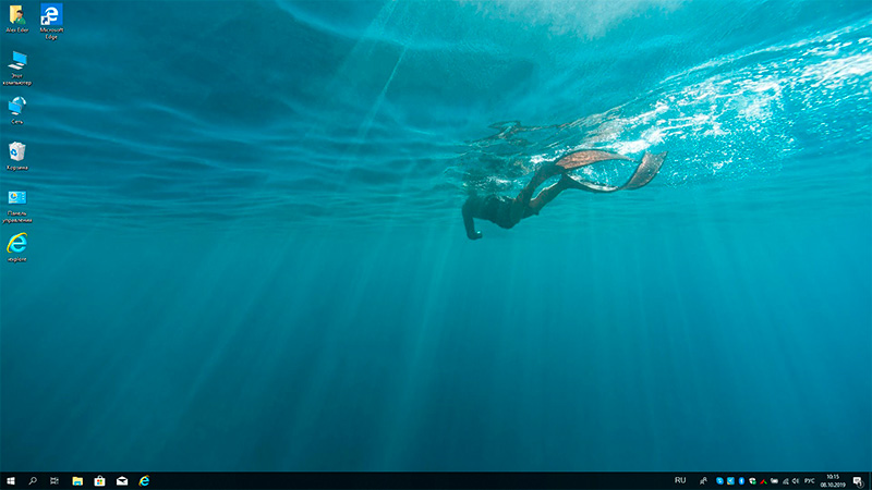 Десктоп только что установленной Windows. На таком экране FullHD в масштабе 100% может показаться мелковато, но никто не мешает увеличить масштаб элементов до 125% или даже 150% - Windows 10 с этим работает совершенно нормально.