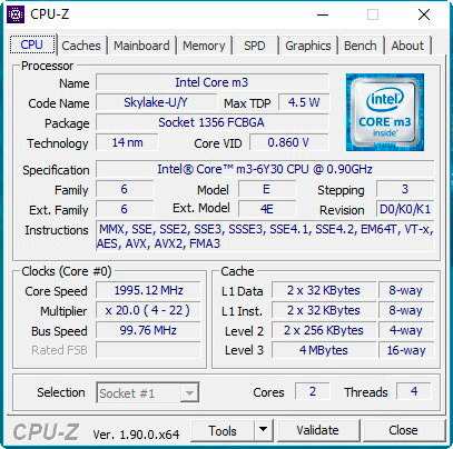 Процессор: Intel Core M3-6Y30, 2,2 ГГц, 2 ядра