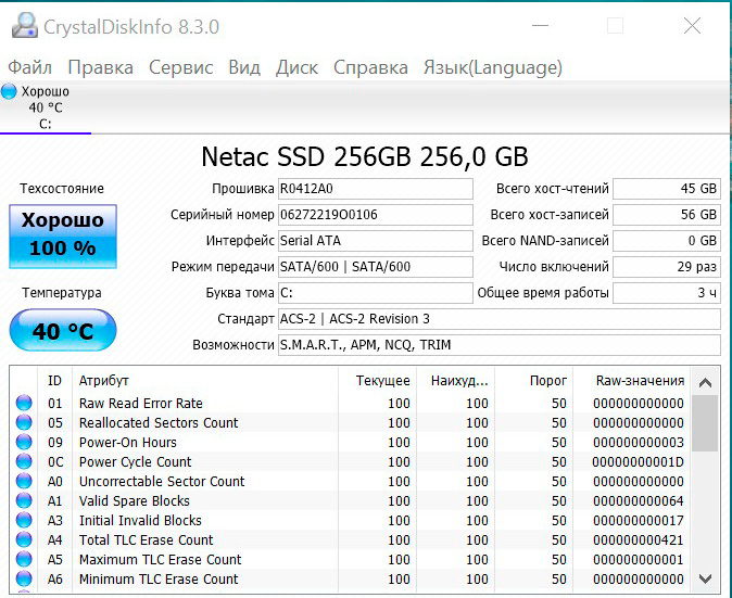 Жесткий диск: SSD Netac N535 256 ГБ (SATA 6 Гбит/с)