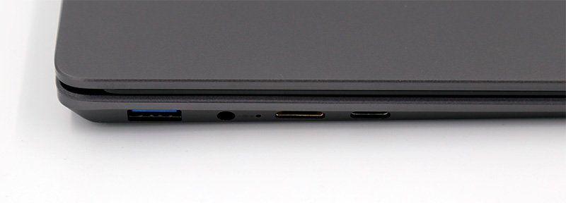 На левом торце - USB 3.0, вход адаптера питания, miniHDMI, Type-C.
