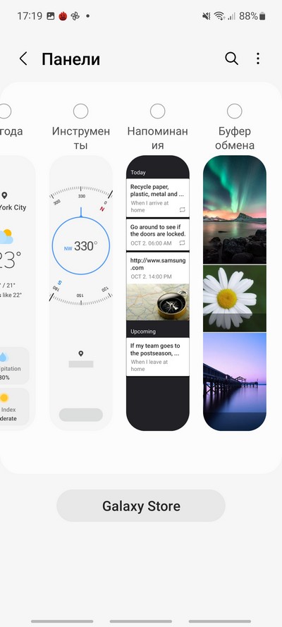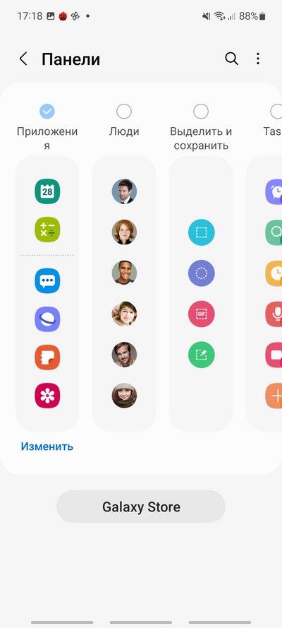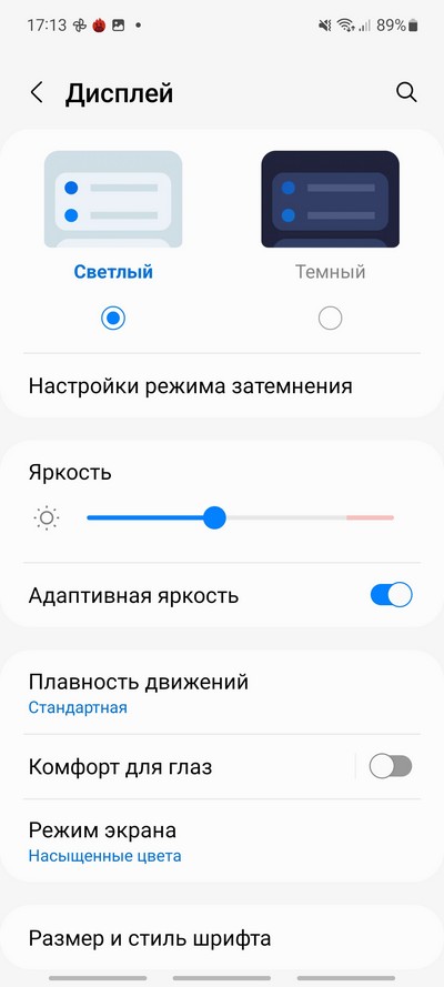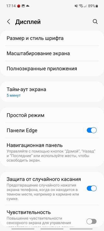 Традиционные для Samsung настройки дисплея: цветовые схемы, режим работы, настройка размера шрифта, масштаб, панели Edge.