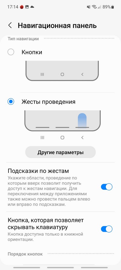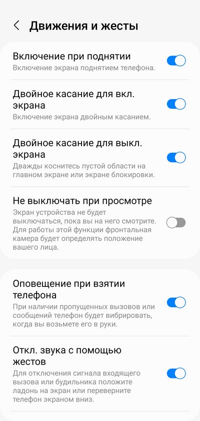 Как обычно, управлять смартфоном можно с помощью кнопок навигации (они настраиваются) или с помощью жестов. Также, как обычно у смартфонов Samsung, кроме стандартных жестов здесь можно включать жесты только от нижнего краях экрана, что лично мне нравится больше всего.