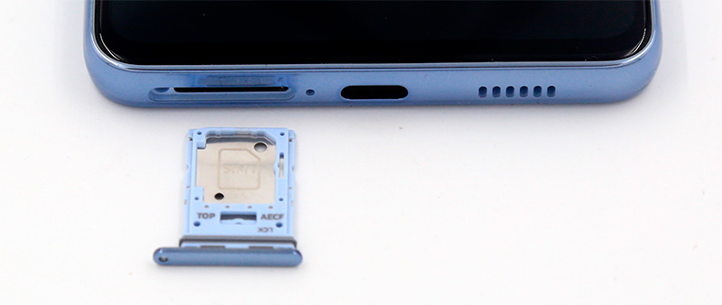 На нижней грани - слот со вставкой под сим-карты и карту памяти, микрофон, порт Type-C, отверстия стереодинамика.